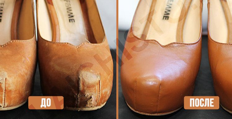 Как скрыть потертостиВ продаже имеются специальные средства по уходу за кожаной обувью, в том числе и крема разных цветов. Нужно подобрать оттенок, соответствующий испорченному изделию. Однако помните, что подобные спреи не устраняют царапину, а лишь маскируют ее.По сути, полимер — это жидкая кожа. Ее можно приобрести в интернете или обычном магазине. Набор состоит из семи цветов. Смешивая их в различных комбинациях можно получить любой оттенок. Состав представляет собой кашеобразную консистенцию, с которой удобно работать: Царапины на коже как убрать своими рукамиКак убрать серьезные царапины на кожаной обуви (читать далее…)Что делать если на обуви появился небольшой надрыв, в таком случае вам поможет суперклей или обычный прозрачный лак для ногтей. Действуйте таким образом: Как убрать царапины с обуви