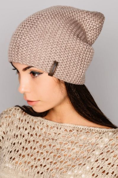 Виды шапки-бини: объемная шапка крупной вязки. Чаще всего в таком варианте изготавливают женские шапки бини, которые можно умело сочетать в урбанистических образах с одеждой «оверсайз» — «носок».