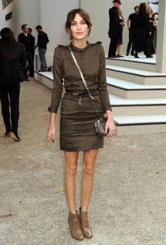 Виктория Бекхэм Девушка в великолепном, коротеньком платье Девушка в платье, сумкой и шляпке в стиле милитари Девушка в светлом платье и ботильонах в стиле милитари Рошель Уайзман в красивом платье с воротничком