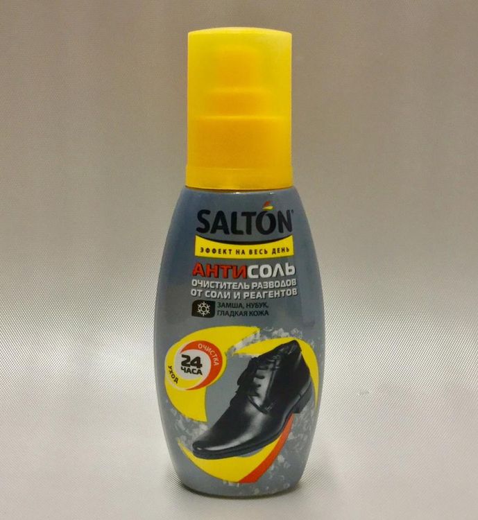 Каждая уважающаяся марка обуви предлагает средства для удаления следов соли, такие как Tarrago de Salter, Detach Stain, «Антисоль» и другие. Их наносят на загрязненный участок и аккуратно протирают чистой тряпкой или губкой.