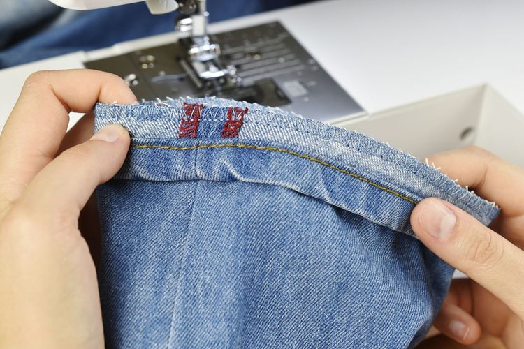 Чтобы подшить джинсы, сохранив фабричный шов, выполните следующие действия: