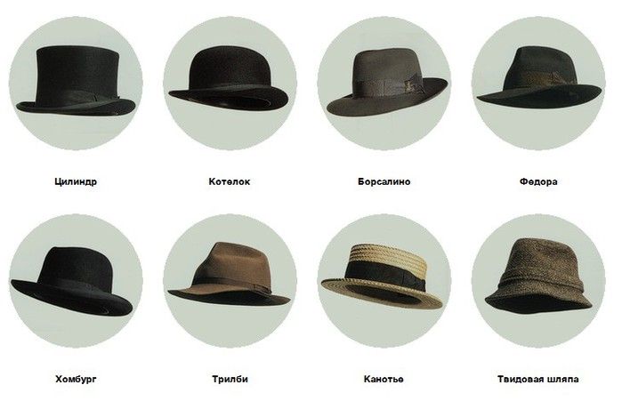 - Котелок – популярный в Европе головной убор с аккуратными полями и полусферической формой.