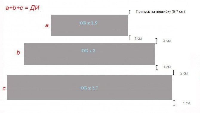 Как создать цыганскую юбку из нескольких слоев, показано на схеме.