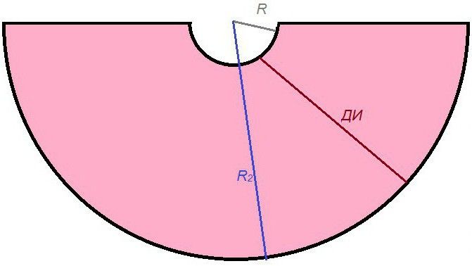 Радиусом второго полукруга будет длина изделия вместе с R. На следующей иллюстрации все показано наглядно.