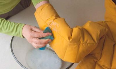 Главное правило — бережное обращение с курткой. Удаляйте пятна с помощью мягкой щетки и мыльного раствора. Обработайте загрязненное место и повесьте изделие на плечики для сушки.