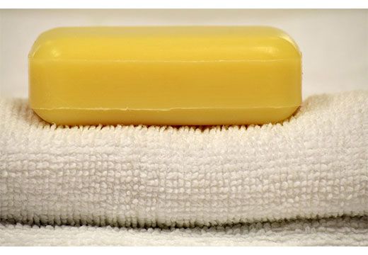 - Сначала – замачивание, затем натереть мылом и оставить примерно на 12 часов.