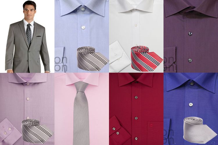 - галстук любого цвета, так как серый универсален. Светло-розовые рубашки хорошо сочетаются с бордовыми или темно-синими галстуками;
