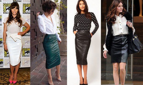 Деловой и вечерний стиль требует строгих каблуков. Кожаная юбка-карандаш хорошо сочетается с классическими лодочками, стильными ботильонами и нарядными туфлями с элементами декора, но обязательно на каблуке.
