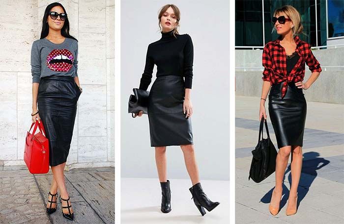 Сочетание кожаной юбки с остальными предметами гардероба напрямую зависит от выбранного стиля.