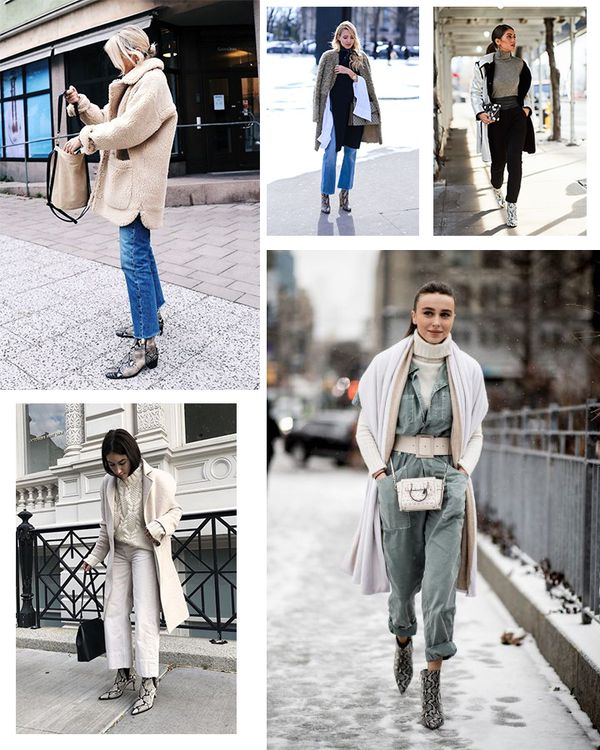 Анималистичный тренд включает текстуры, имитирующие кожу рептилий, и расцветки, напоминающие шкуры диких животных. Обувь с принтом под змею, питона, крокодила, а также леопарда и тигра будет актуальна зимой 2024 года. Экзотические узоры яркие, поэтому их лучше сочетать с простыми однотонными предметами гардероба. Например, змеиные ботильоны хорошо смотрятся с джинсами синего, голубого или черного оттенка, а также с белым денимом. Леопардовые ботинки можно носить с брюками черного цвета или в природных оттенках: коричневом, охристом и болотном. Животные принты гармонируют с модными моделями казаков, сапогами-трубами и грубыми ботинками.