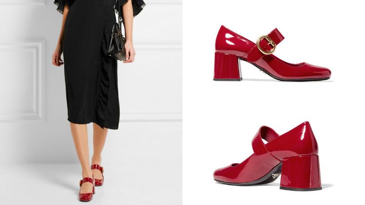 Тем, кто не чувствует себя уверенно на высоких каблуках, подойдут модели из красной лаковой кожи с толстым каблуком. Такие туфли предлагают многие дизайнеры и эффектно смотрятся с одеждой в стиле ретро, вдохновленной модой 70-х.