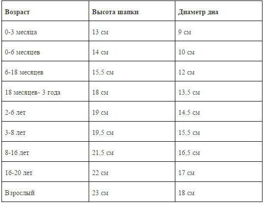 Если мама планирует связать шапку для ребенка, ей может понадобиться информация о количестве петель для детской шапки. В этом поможет ориентировочная таблица со стандартными размерами.