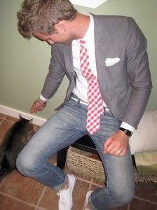 Джинсы, чинос. Здесь я бы посоветовал руководствоваться обстоятельствами и характером вашего места работы. Демократичный дресс-код позволит носить искусственно состаренные джинсы с дырками, да еще подвернуть штанину, чтобы была полностью видна обувь. Однако в более строгих организациях вам придется отказаться от этого и придерживаться темных джинсов без ярких простроченных швов. Чинос, в этом случае, должны иметь стрелки.