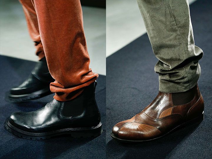 Удобные ботинки средней высоты с носком острой или круглой формы. Изготавливают такую обувь из натуральной кожи или замши, а ее основная отличительная черта – это наличие специальных резиновых вставок по бокам. Цветовая гамма может быть такой же оригинальной и нестандартной, как и сам дизайн подобной зимней обуви для мужчин.